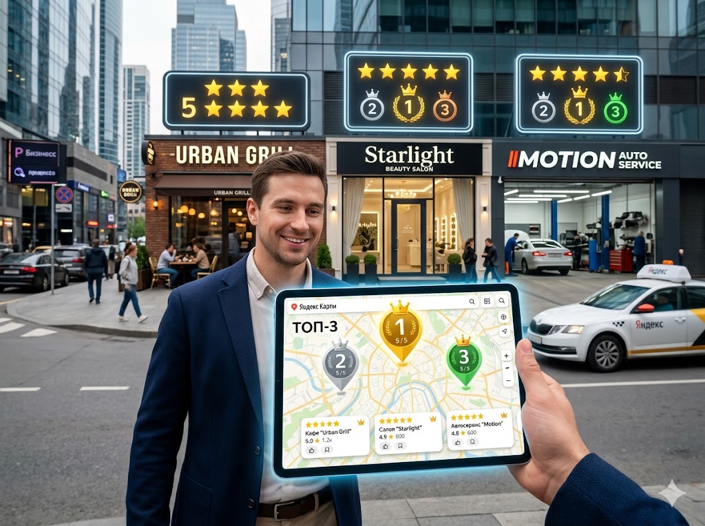 В 2026 году Яндекс Карты стали основным источником трафика для локального бизнеса. Если вашего кафе, салона красоты или автосервиса нет в первой тройке выдачи — вы теряете до 80% потенциальных клиентов.